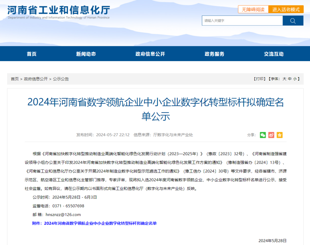 近日,河南省工信廳官網(wǎng)公示了2024年河南省數(shù)字領(lǐng)航企業(yè)中小企業(yè)數(shù)字化轉(zhuǎn)型標(biāo)桿名單。河南威猛振動(dòng)設(shè)備股份有限公司入選中小企業(yè)數(shù)字化轉(zhuǎn)型標(biāo)桿名單,并順利通過(guò)公示!此次成功入選名單是威猛股份深入踐行河南省
