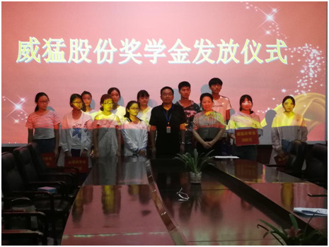 8月27日下午,2018年度“威猛獎學(xué)金”和“思民獎學(xué)金”的發(fā)放儀式在威猛股份行政樓一樓榮譽(yù)室舉行。威猛股份總經(jīng)理王思民、人力資源部經(jīng)理李惠萍和獲獎學(xué)生