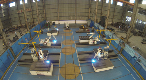 威猛股份生產(chǎn)車間內(nèi)的網(wǎng)格化移動機器人焊接系統(tǒng)