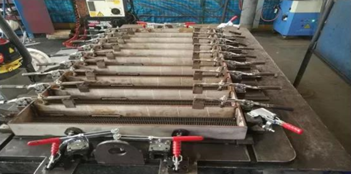 使用工裝前為人工對接,由于篩網(wǎng)豎筋比較多,需要人工先對接絲軸圍板及豎筋,再用二保焊對圍板、篩網(wǎng)、豎筋進(jìn)行焊接。人工對接的產(chǎn)品容易出現(xiàn)豎筋歪斜等問題,同時人工焊接產(chǎn)生的焊渣飛濺在篩網(wǎng)上,較難清理。