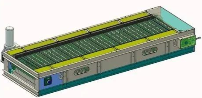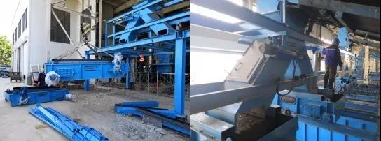 該鏈條帶式輸送機(jī)用于廚余垃圾處理的前端進(jìn)料。廚余垃圾經(jīng)過(guò)熱水解后由抓斗從儲(chǔ)料坑轉(zhuǎn)運(yùn)至鏈條帶式輸送機(jī)上方料倉(cāng),物料在輸送帶和刮板的帶動(dòng)下移動(dòng)。鏈條帶式輸送機(jī)頭部安裝均勻布料器,物料被均勻分布后才會(huì)進(jìn)入二級(jí)轉(zhuǎn)運(yùn)皮帶機(jī)。熱水解物料含水量比較高、粘性大,對(duì)于前端進(jìn)料設(shè)備而言,鏈條帶式輸送機(jī)密封性好、輸送能力大、故障率低的優(yōu)點(diǎn)很好的滿足了現(xiàn)場(chǎng)要求。