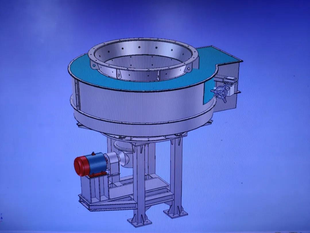 6、出料流暢,不漏料,不撒料,圓盤(pán)下方設(shè)有清灰裝置,可實(shí)現(xiàn)自動(dòng)清料。