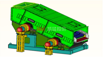 采用此結(jié)構(gòu)方式,運動部件少,參振質(zhì)量減少,所以獨特的結(jié)構(gòu)設(shè)計使功率與傳統(tǒng)篩相比可以降低。因篩箱不參振,所以更容易實現(xiàn)全封閉式結(jié)構(gòu),使粉塵不外泄,滿足較高的環(huán)保要求。