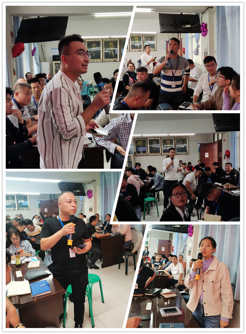 營銷部銷售精英代表楊工結(jié)合其自身在公司28年的銷售閱歷,分別從平臺、誠信和選擇三方面分別就營銷業(yè)務(wù)開展經(jīng)驗、技巧進行生動介紹,干貨滿滿。