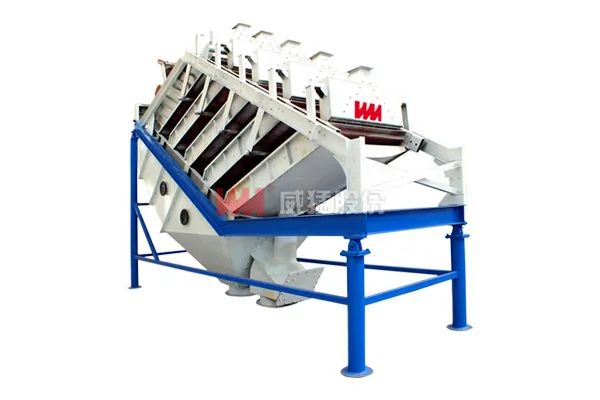 用于精礦粒度控制與分級(jí)。分布篩的篩分效率高,篩下產(chǎn)物正富集效果顯著,從而提高了精選入選品位(可同比提高精礦品位1%~3%);分布篩在鐵礦選礦廠可代替螺旋分級(jí)機(jī)和旋流器,與粗粒磁選工藝配套,提高磨礦機(jī)處理能力。