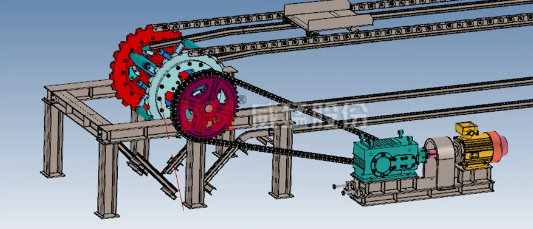 盤式多點(diǎn)卸料輸送機(jī)是新一代輸送設(shè)備,是目前完成長(zhǎng)距離水平輸送,同時(shí)為多個(gè)料倉(cāng)卸料的設(shè)備。一、工作原理盤式多點(diǎn)卸料輸送機(jī)以板式套筒滾子鏈作為動(dòng)力傳輸器件,鏈條與全部首尾相接的底部帶滾輪的臺(tái)車相連,并帶動(dòng)